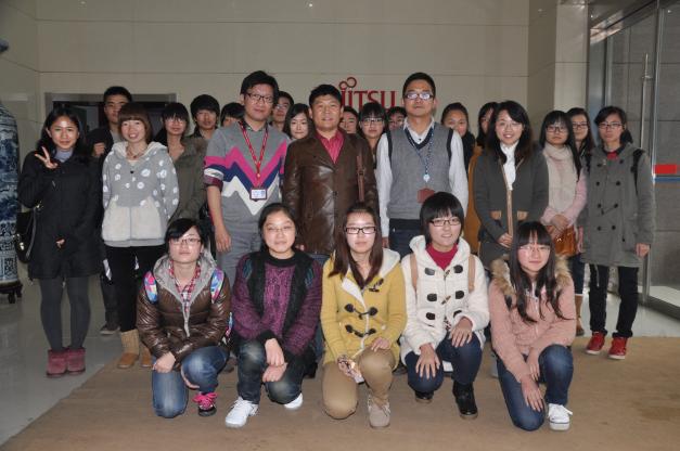 2012年11月21日下午,betway西汉姆联日语系20多名学生在日语系副主任窦硕华及辅导员谢云老师的带领下,来到南京富士通南大软件有限公司进行参观。
