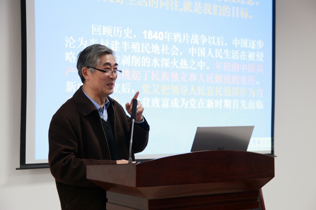 在此次主题教育中,丁荣茂以要点提炼的方式回顾了中华民族的发展历程,深入阐述了中国梦和双百年计划,引导学生党员在“打赢攻坚战,全面入小康”的道路上积极寻找自身定位。“学是前提,做是根本”,他以知名校友李中华等优秀党员的事迹激励大家要树立目标、不畏艰难、不断进步,在现阶段的学习和今后的工作岗位上有所作为。
