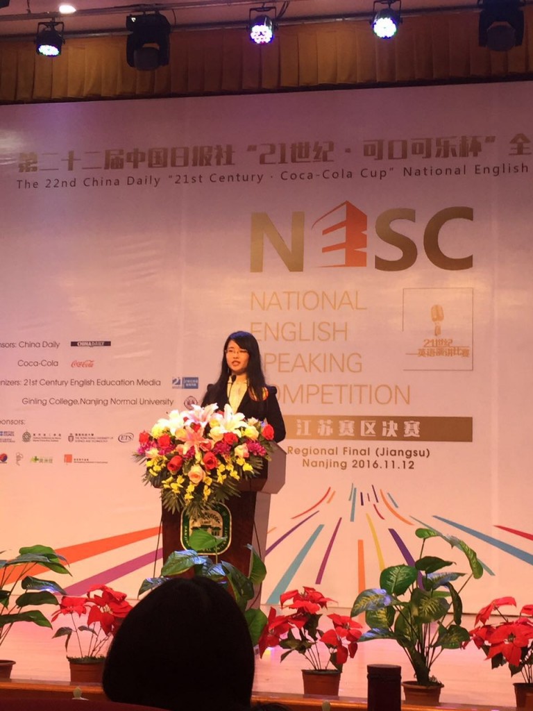 喜报——我院学生在2016年“21世纪杯”全国英语演讲大赛江苏赛区决赛中摘得大赛一等奖