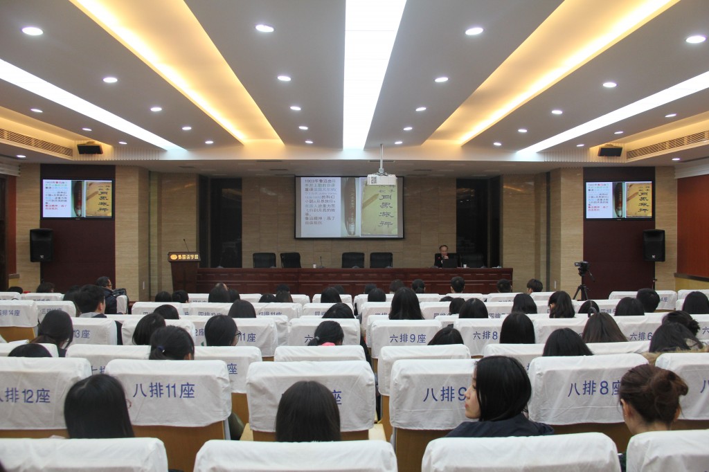 讲座伊始,藤井省三教授以鲁迅将日语版《月界旅行》(原作法文)翻译成中文的话题作为整场报告的切入点,展开了一场生动风趣,视野广博的学术报告。