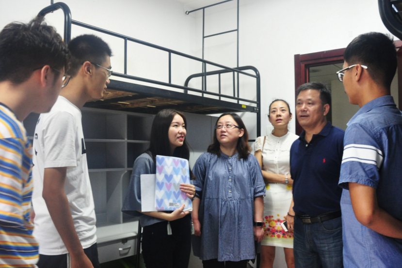 院长一行前往女生宿舍,对初次出远门和初次住校的新生,给予了更多的关心,一方面让家长放心,学校学院拥有很高的软硬件设施;一方面叮嘱学生们要独立,学会适应,在学习之余也要锻炼自己的综合素质,如加入一些社团组织。既要好好利用学校创造的良好外部条件,又要通过自身学习和实践积累有利内部条件。