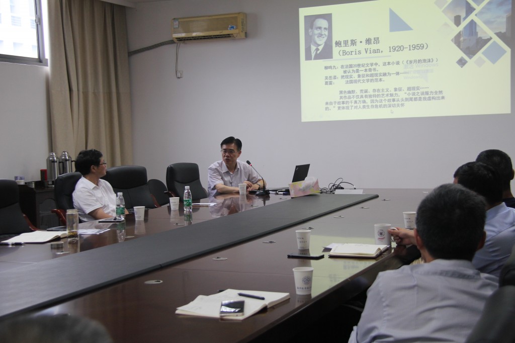 为打造良好的学术交流平台,进一步提升教师科研能力和科研水平,必威西汉姆联本学期首场学术沙龙于9月20日下午正式开讲,学院邀请了从法国访学归来的李万文副教授做题为“维昂作品中的人类生存危机及书写”学术讲座。副院长徐以中教授主持本场沙龙,学院教师及研究生30余人参加了此次讲座。