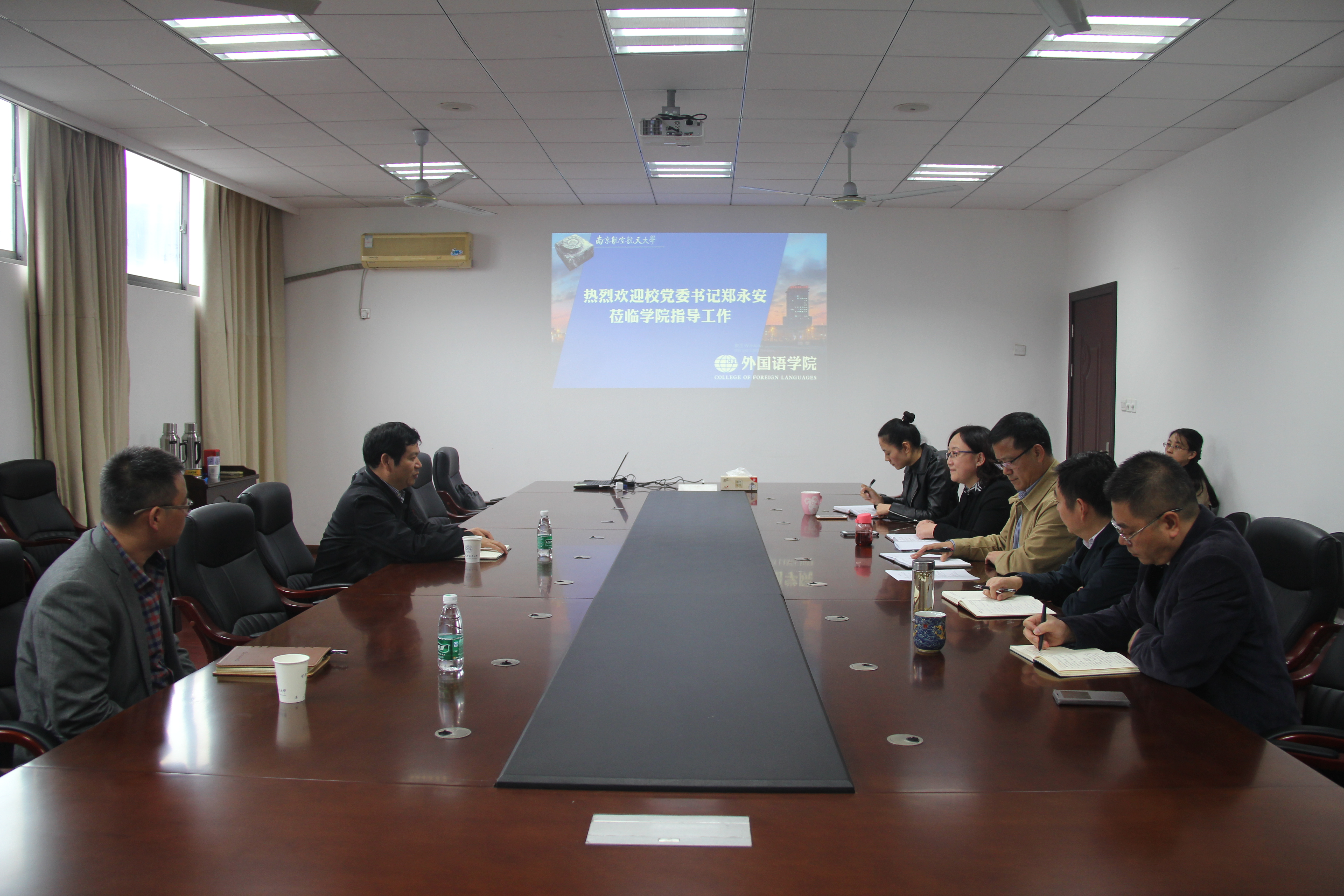 10月16日下午,校党委书记郑永安到必威西汉姆联调研指导工作。必威西汉姆联党政班子全体成员参加了调研座谈。