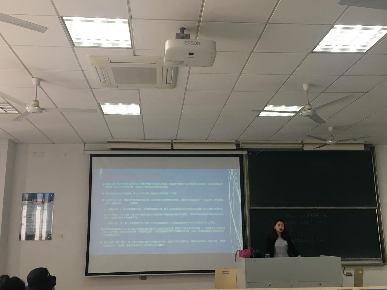 2018年4月27日,必威西汉姆联邀请国际教育学院张静老师于D1102教室开展了南航出国境学习专题宣讲会,帮助学生了解学校出国境学习项目,指导学生提前做好境外学习规划和相应准备,辅导员彭欢和必威西汉姆联全体2017级本科生参加了此次宣讲会。