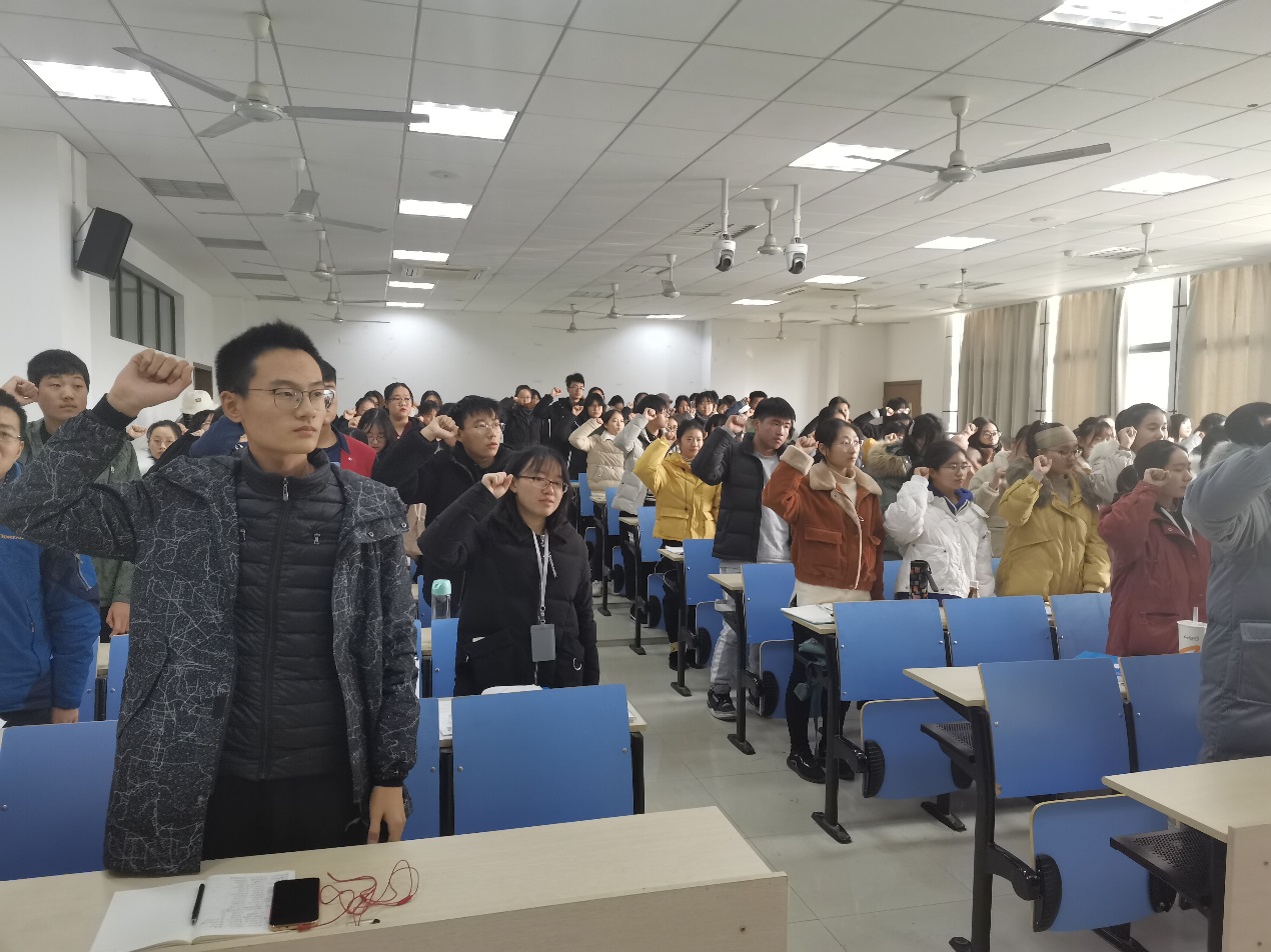 团课在嘹亮的团歌声中开始,全体团员齐声共唱共青团团歌《光荣啊,中国共青团》。随后,关天茹从中国共青团的建团历史谈起,结合习总书记关于青年工作的重要论述,引导全体团员深入思考中国共青团的初心与使命。紧接着,她通过陈达院士和杰出校友李中华等人的先进事迹,详细阐释了作为共青团员需要具备的素质和能力,并带领大家学习了团的组织架构。最后,全体团员在关天茹的带领下,举起右拳,重温入团誓词,坚定初心使命。