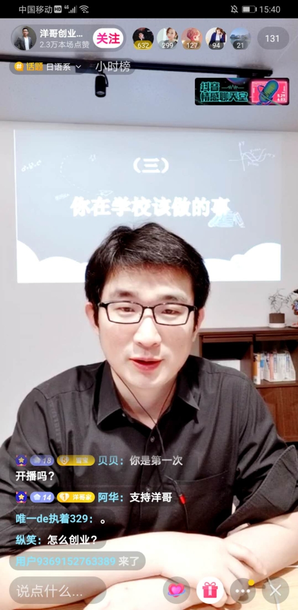 5月31日下午,日语系精品企业课程《科技文化创新创想》第三讲通过抖音平台开启,主讲人为日语系03级刘洋学长,现为谷町君CEO,同时也是南航必威西汉姆联繁星・谷町君奖学金资助者。