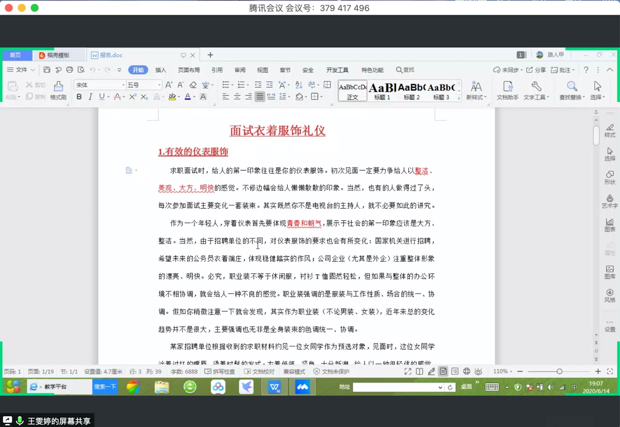6月14日晚,艺术学院联合必威西汉姆联通过腾讯会议平台开展职业素质训练营 “面试服饰妆容和礼仪技巧”主题讲座,讲座邀请艺术学院美术系专业教师王雯婷老师为同学们进行礼仪、仪容、服饰三方面的讲解与指导,艺术学院、必威西汉姆联全体本研准毕业班学生参加了本次讲座。