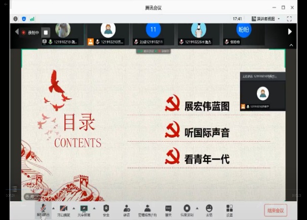 党的十九届五中全会是我们党在全面建成小康社会胜利在望、全面建设社会主义现代化国家新征程即将开启的重要历史时刻召开的一次十分重要的会议,本次公开课后,全体外院团员青年进一步明确自己肩负的担当,将所学自觉践行于学习和工作生活中,为建设社会主义现代化国家贡献一份光热。