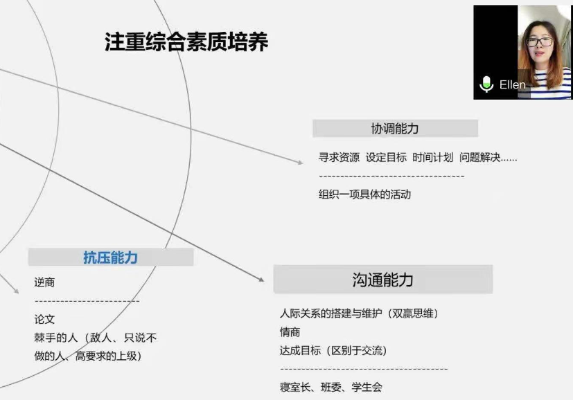讲座中,杜乔芝首先分享了自己的经历和经验,然后具体阐述了“如何具备基础能力”、“定位怎样的就职价值观”和“如何成为有价值的人”。讲座内容涉及心理学和管理学知识,杜乔芝结合在日企工作收集的具体案例,深入浅出、层层递进、详细生动地分享了逻辑思维在工作、学习和生活中的重要性。