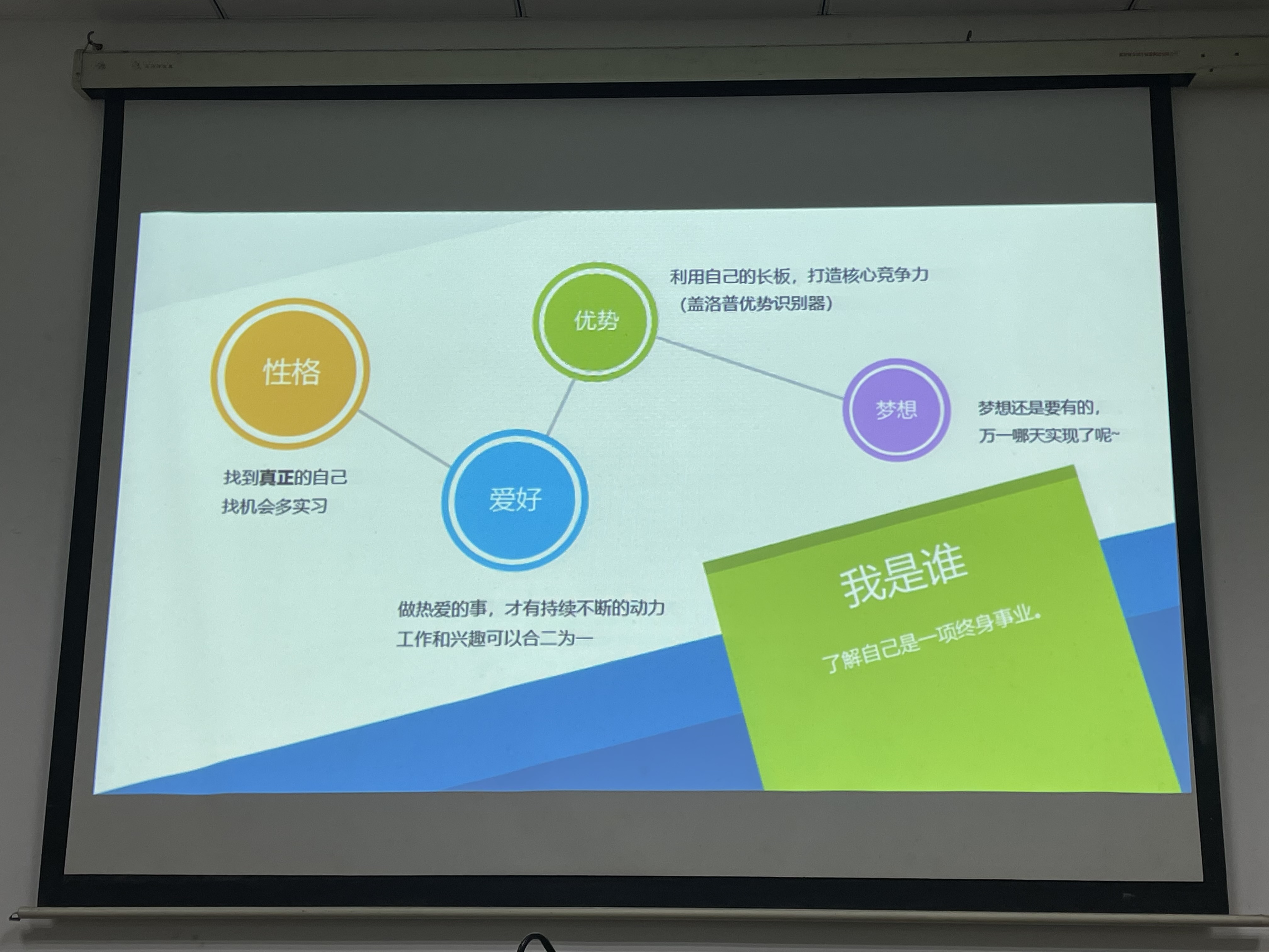 结束个人经历的分享后,郭璇还细心地为同学们总结了四点工作通用技能,即office的使用、数据分析、汇报工作和同事沟通,为同学们日后进入职场后的技能提升方向提供了参考。郭璇还给出了“相信积累的力量、不怕犯错和享受学习的乐趣”三条建议,强调了无论是在学校还是在职场中,积累与学习都不可忽视。最后她为同学们推荐了三本职场相关的书籍,希望能为大家在工作前,提前对职场有所了解提供帮助。