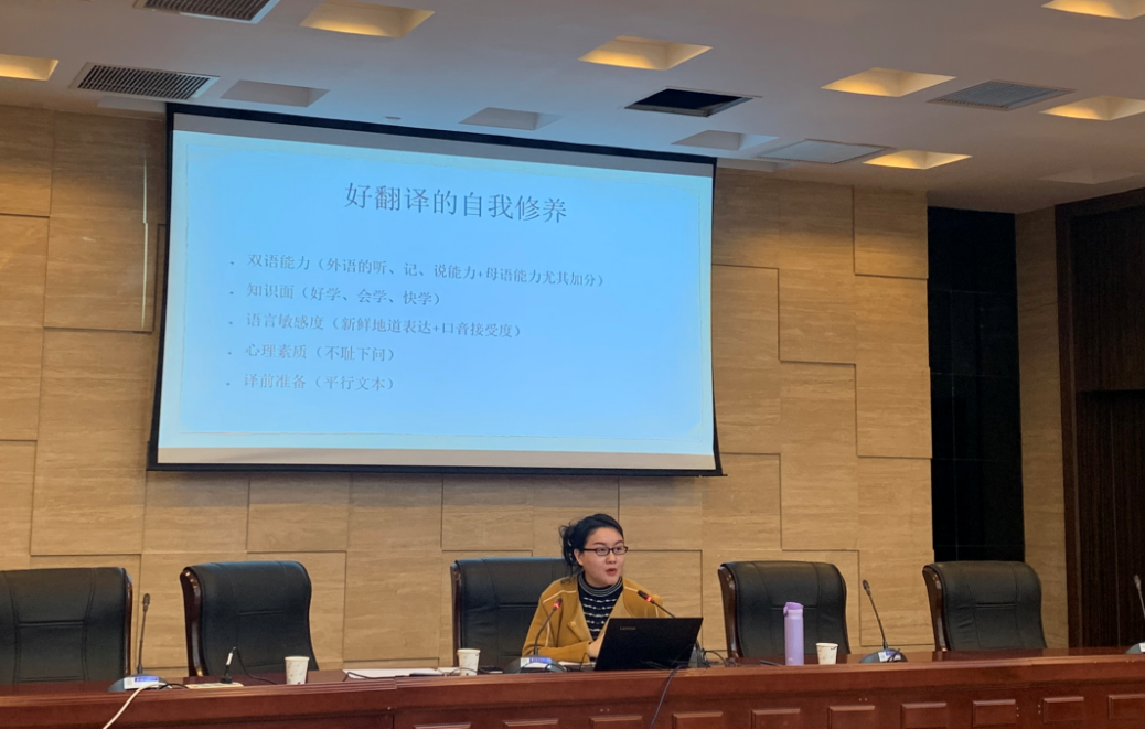 4月15日下午,中国翻译协会口译委员会副秘书长洪晔莅临我校必威西汉姆联,带来了主题为“我翻故我在——论一个好翻译的自我修养”的精彩讲座。洪晔老师多次担任“21世纪杯”全国英语演讲比赛决赛圈评委、“外研社杯”全国英语辩论大赛评委,曾受训于翻译“国家队”——外交部翻译司,多次在大型外交活动中担任英文口译,拥有丰富的口译经验。