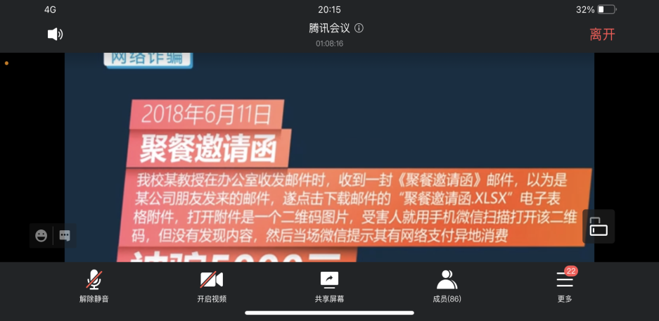 本次防电信网络诈骗安全教育讲座提升了师生对电信网络诈骗的知晓率和防范意识,在外院营造了“全民反诈”的良好氛围。后续学院将结合年级会、班会等形式进一步普及校园防诈骗相关知识,为建设平安校园贡献力量。