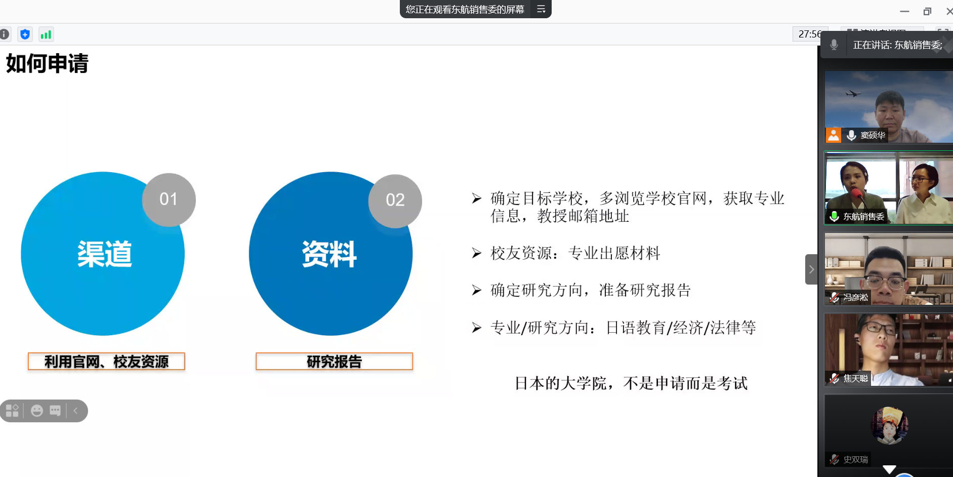 两位主讲人聚焦日语系学生留学、就业与职场发展,从留学日本、就业于民航两个方面分享了自己的看法。