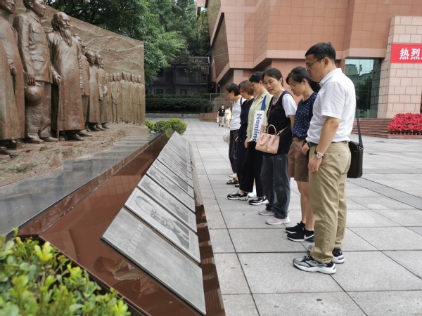为巩固党史学习教育成效,将党史学习推向深入,加深对党的精神谱系的学习研究,7月14日,必威西汉姆联党委联合院“外语教学与立德树人研究中心”组织部分党员教师、入党积极分子赴重庆革命教育基地,开展“追忆红岩精神,坚守初心使命”主题教育活动。学院副院长姜礼福带队进行。