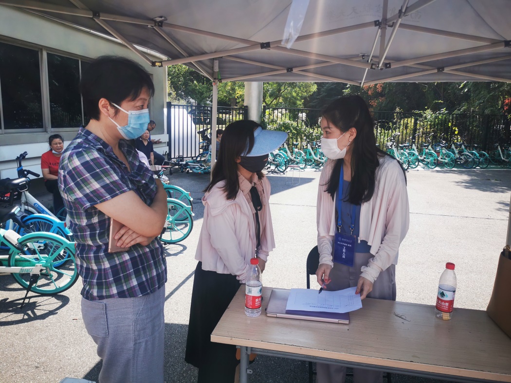 新生返校第一天,学院党委书记左彤云,党委副书记梁薇前往学校返校值班点大西门看望本院迎新学生工作人员,了解新生返校最新情况。