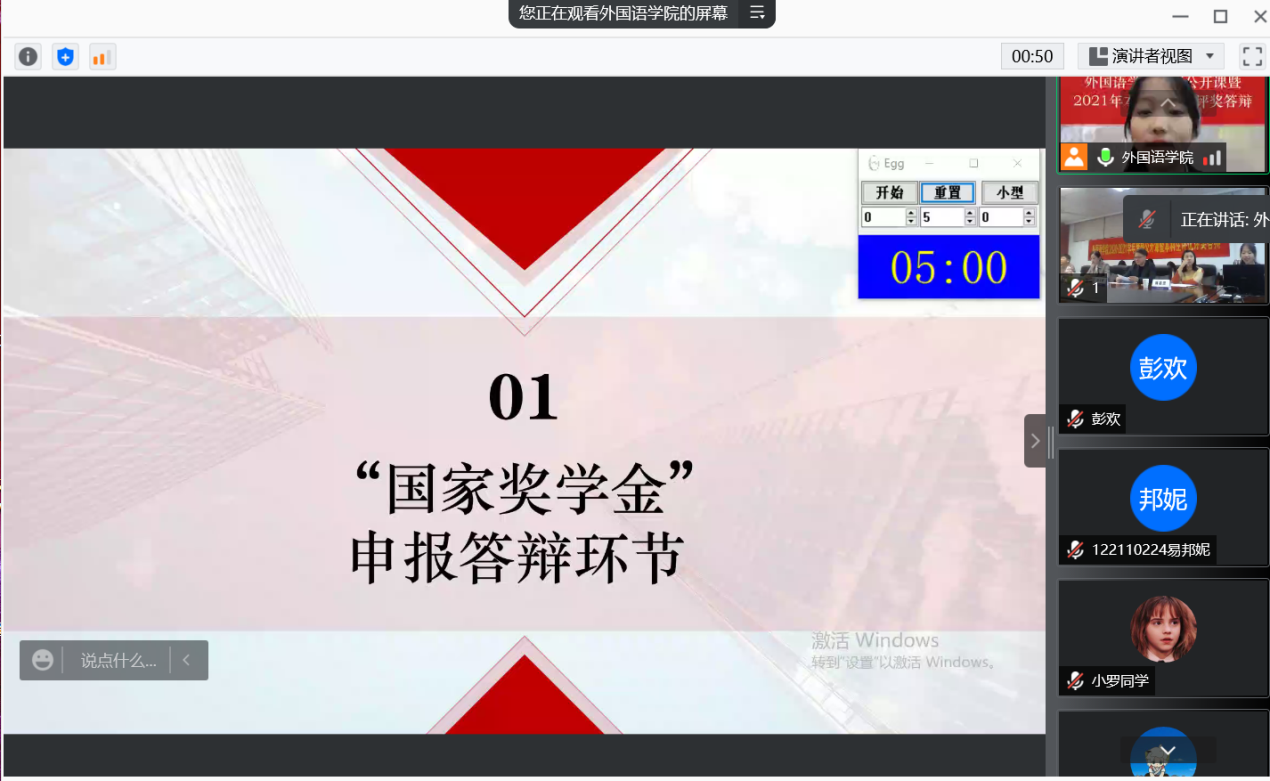 本次答辩奖项包括“国家奖学金”和“校长(年度)特别嘉奖”,共有17名优秀的外院学子申报。