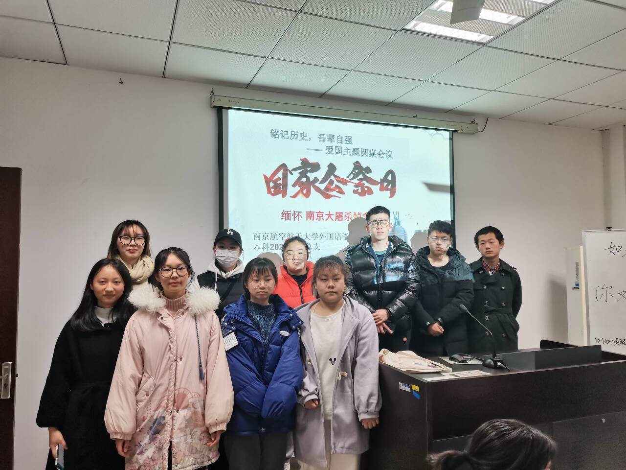 为了缅怀在南京大屠杀中遇难的同胞,唤起青年学子的爱国爱党意识,明确在新时代背景下的使命与责任,12月12日,必威西汉姆联2021级团总支开展了“铭记历史,吾辈自强——爱国主题圆桌会议”团日活动。本次团日活动以团支部为单位,分为两个会场同时进行,一会场由徐玙晗、易邦妮主持,二会场由陈妍莅、刘可主持,全体支部团员参加本次活动。