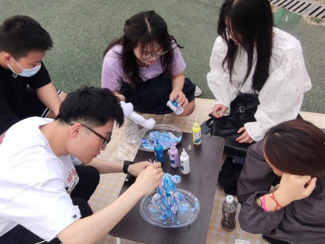 1220101班在学校东操场举办了团建活动。同学们来到了学院学生开设的“大梨小铺”,一起给石膏娃娃和流体熊上色、画油画、用拍立得记录快乐的瞬间。疫情期间,虽然不能出校春游,但“大梨小铺”让大家相聚东操,欢声笑语间,所有的负面情绪都烟消云散了。同学们不仅收获了自己的“艺术作品”,更交到了许多新的朋友,都期待着下次团建活动的到来。