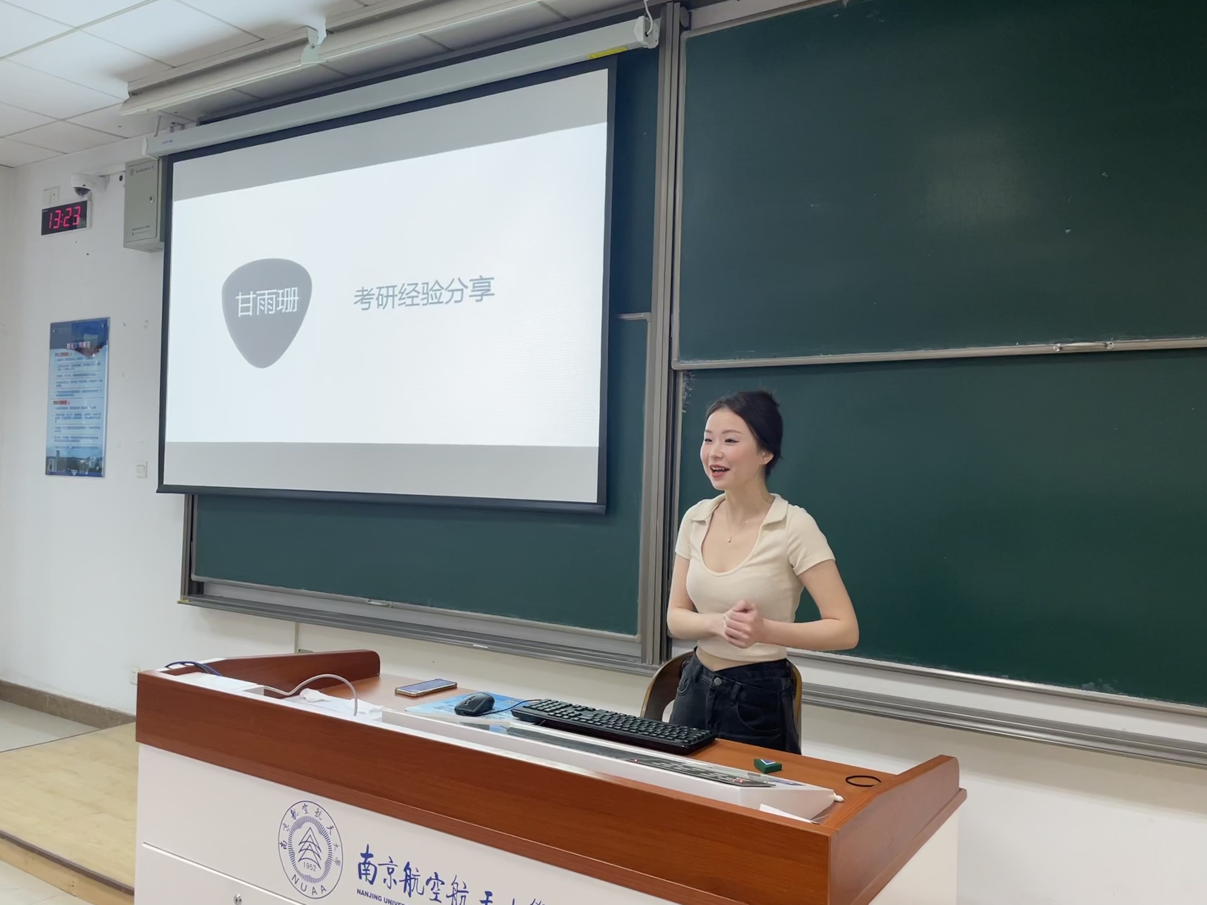 随后,英语专业甘雨珊作为考研代表,给大家分享了她成功调剂至南京理工大学的考研经验。她强调了时间观念的重要性,针对MTI考研的具体科目,结合个人备考经验,分析了具体方法。日语专业张舒同学则分享了自己成功申请日本东北大学的经历。她强调要用心准备研究计划书并与心仪老师沟通交流,提醒日语班同学要重视英语成绩,尤其是托福成绩对申请日本研究生的重要性。