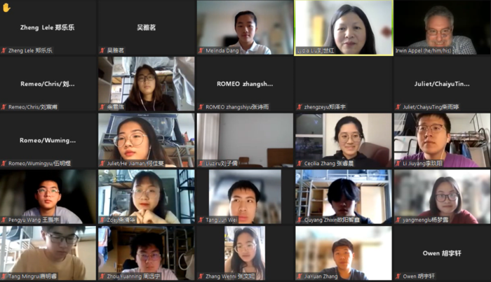 本次讲座由必威西汉姆联刘世红副教授主持。在讲座的上半场,Irwin Appel教授诠释了西方最伟大的戏剧家莎士比亚创作的思想内涵和艺术价值,展示丰富多彩的戏剧舞台演绎手法和理念,解读《罗密欧与朱丽叶》中爱情故事的深层意义。在讲座中精心穿插多种有趣的互动环节,引导观众领略莎翁戏剧的语言特色和艺术魅力。下半场的讲座中,多位学生演员表演《罗密欧与朱丽叶》经典对白,表演生动精彩,获得Irwin Appel教授及与观众的高度赞扬,Irwin Appel并给予悉心指导。在讲座最后的问答环节中,同学们纷纷在聊天室打字、以及开麦出镜提问, Irwin Appel教授一一答疑解惑,将讲座气氛引入高潮。