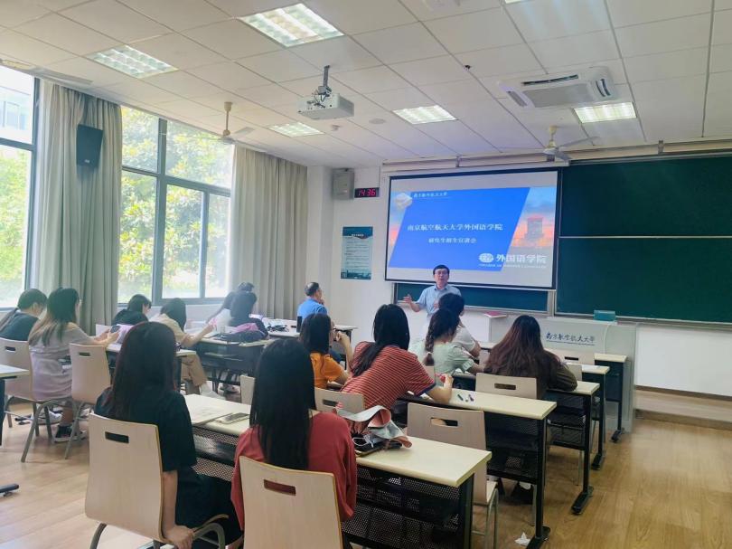 鲍德旺老师向大家展示了近年我院MTI报考录取比例及在校研究生取得的学术成果,引导同学们无论求学或就业,都要积极规划、合理定位。