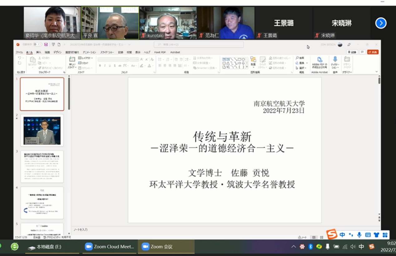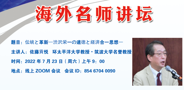 7月23日(周六)上午9:00,必威西汉姆联日语系海外名师讲坛第三讲通过线上ZOOM会议成功进行,主题为《伝統と革新―渋沢栄一の道徳と経済合一思想―》。主讲嘉宾为环太平洋大学教授・筑波大学名誉教授佐藤贡悦先生。