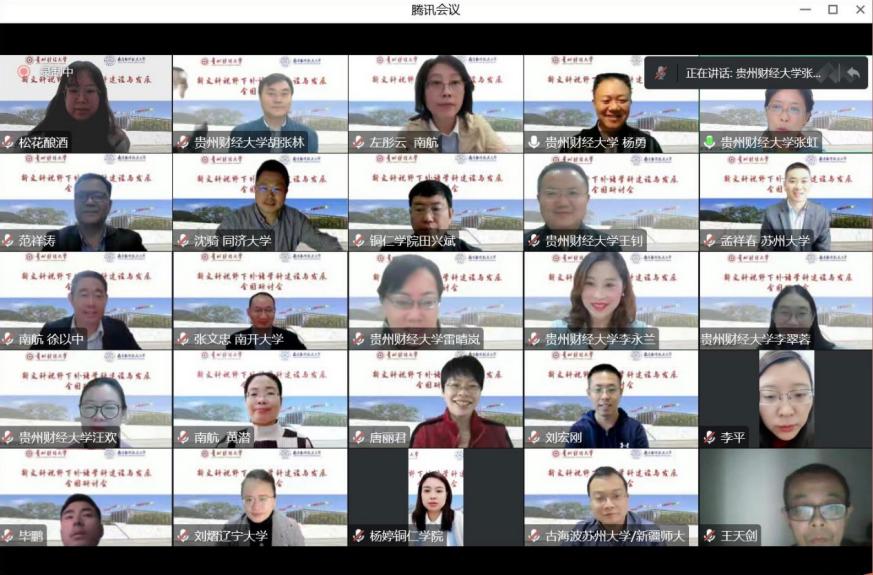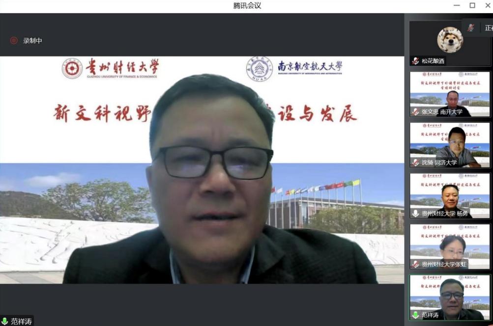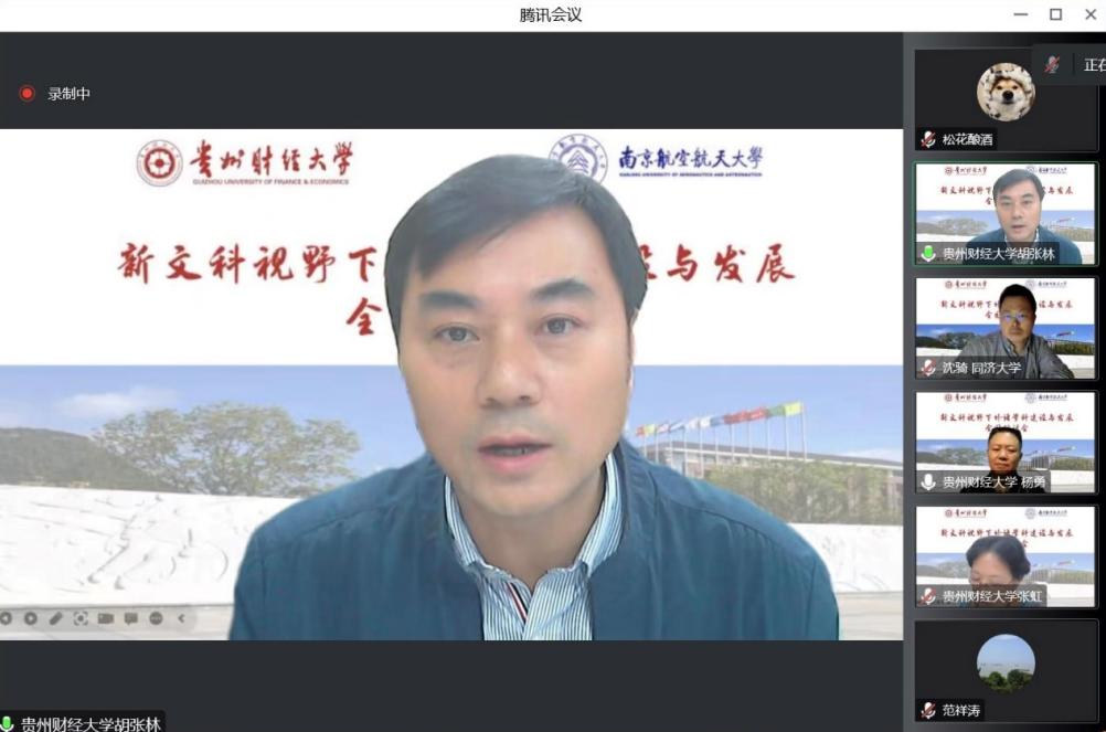 贵州财经大学必威西汉姆联党委书记胡张林介绍了贵州财经大学外语学院的基本情况、专业规划、师生情况以及国家社科项目情况,指出必威西汉姆联形成了外国语言文学为主体,商务英语、西班牙语为特色的专业与学科发展,同时他还介绍了学院师生服务社会的活动以及在新文科建设下与国内外高校的合作关系。