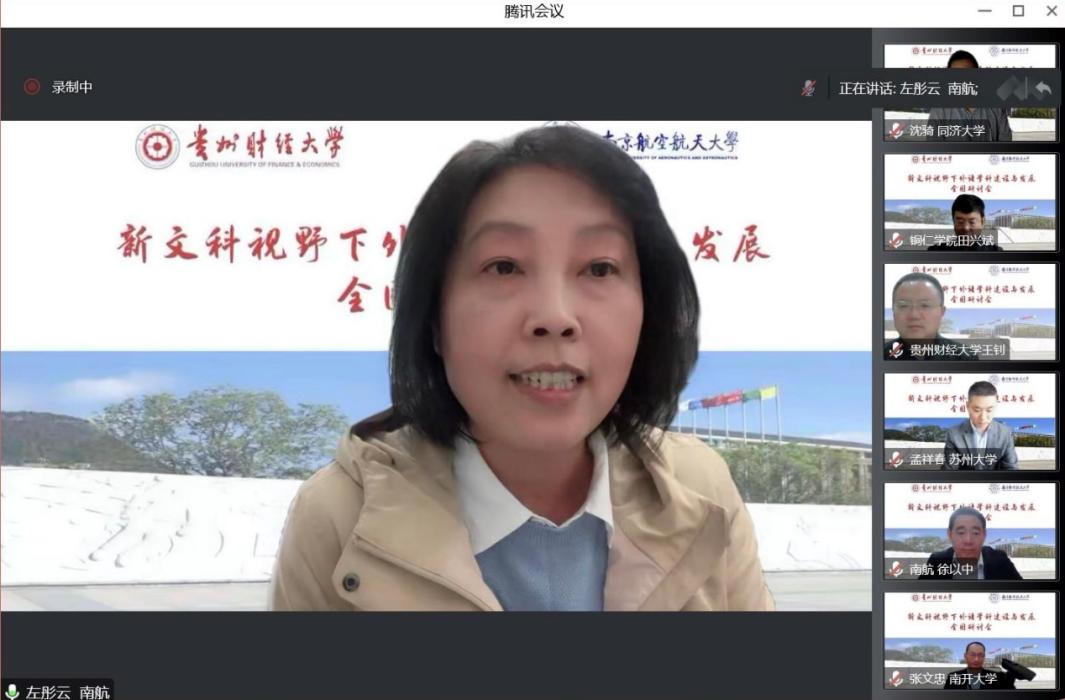 必威西汉姆联党委书记左彤云与贵州财经大学外语学院院长张虹一起宣布,贵财外语学院和南航必威西汉姆联联合共建虚拟教研室的活动正式启动。左彤云表示,学院将全力支持虚拟教研室的建设,并代表学院欢迎各位专家在疫情后莅临南航指导。