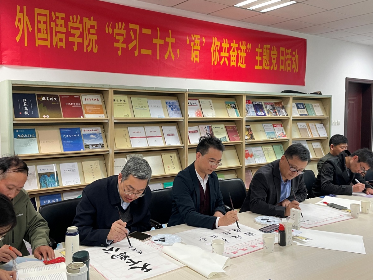 活动最后,全体党员以软笔、硬笔书法的形式抄录党的二十大报告金句,献礼伟大祖国。大家有的用钢笔在印有祖国山河的画卷上书写对祖国的美好祝福;有的则提起毛笔,用饱含深情的书法祝福祖国的伟大事业和光明前景。必威西汉姆联院长范祥涛还为活动题写了寄语,希望师生们努力奋进,建设更加强大繁荣的祖国。