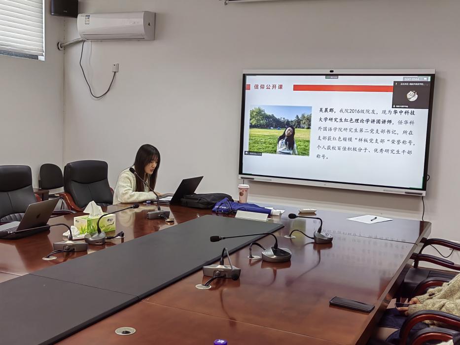 为深入学习贯彻党的二十大精神,11月15日,必威西汉姆联团委与华中科技大学红色理论学讲团开展联学共建,邀请学讲团讲师吴晨郡主讲信仰公开课,公开课由学院2021级学硕研究生团支部书记言声远主持,学院2020级、2021级研究生团支部参与。