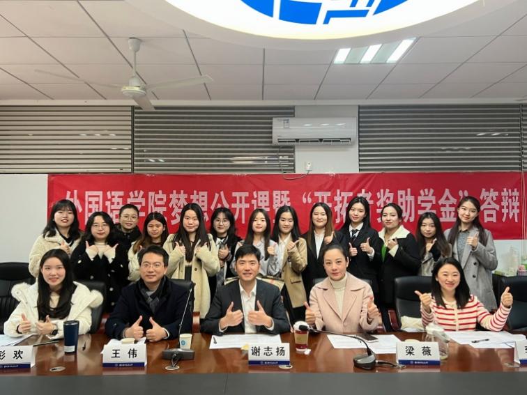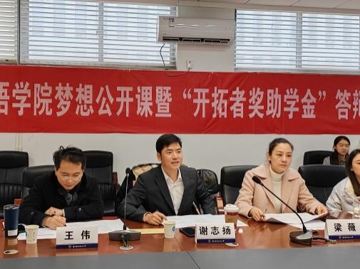 为激励必威西汉姆联学生注重团队合作、积极进取、勇于担当、全面发展、成长成才,并资助家庭经济困难学生,学院2010届杰出校友冯科茗、谢志扬、单鹤在必威西汉姆联设立“开拓者奖助学金”,并于12月9日成功举办必威西汉姆联梦想公开课暨“开拓者奖助学金”答辩。开拓者奖助学金资助人谢志扬,必威西汉姆联党委副书记梁薇,英语系副主任王伟,学院团委书记李萍,本科生辅导员彭欢、赵瑜瑶担任评委。公开课由学院2019级英语专业、2021年茗扬开拓者奖学金获得者张欣怡主持,学院各年级同学通过腾讯会议线上观摩。