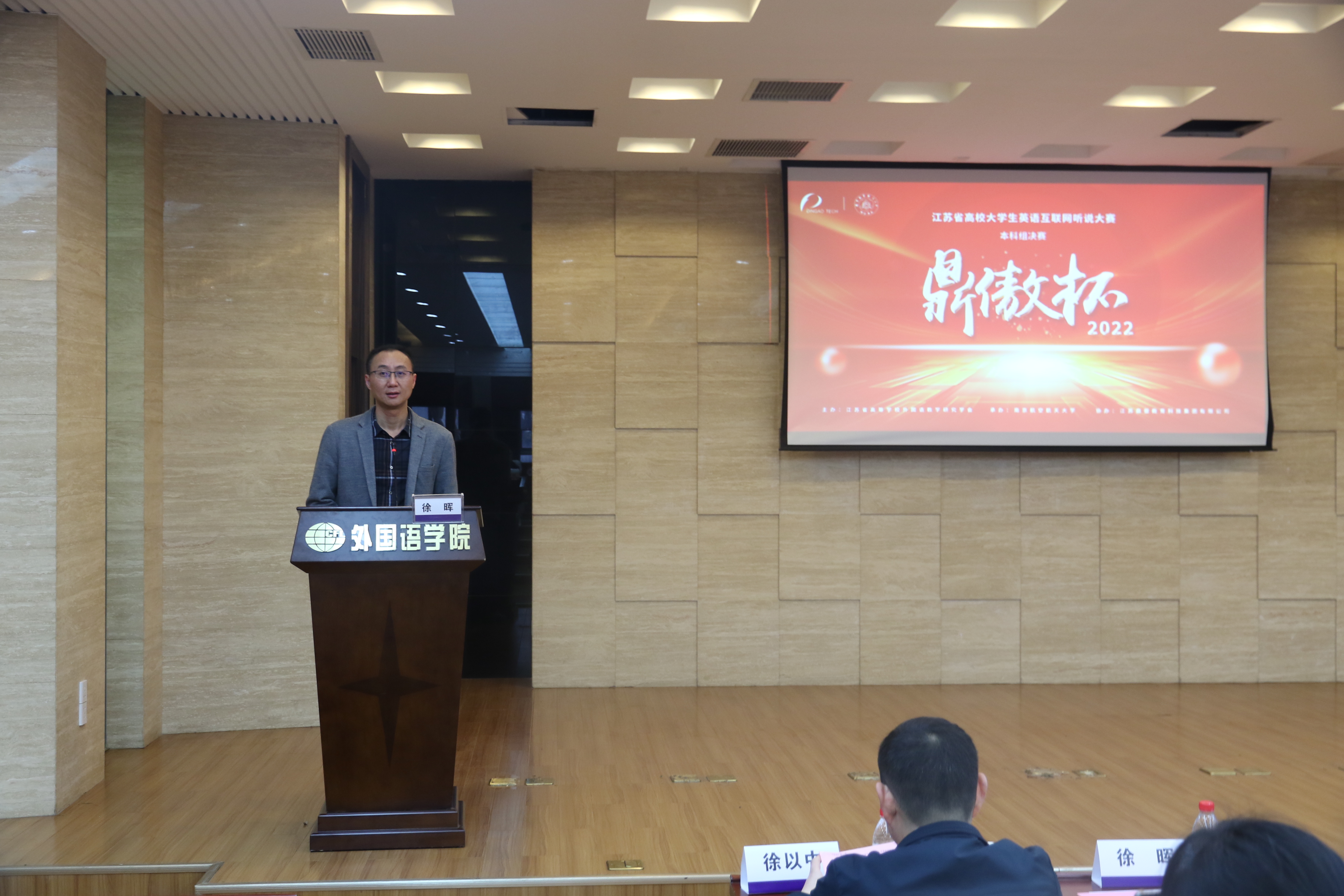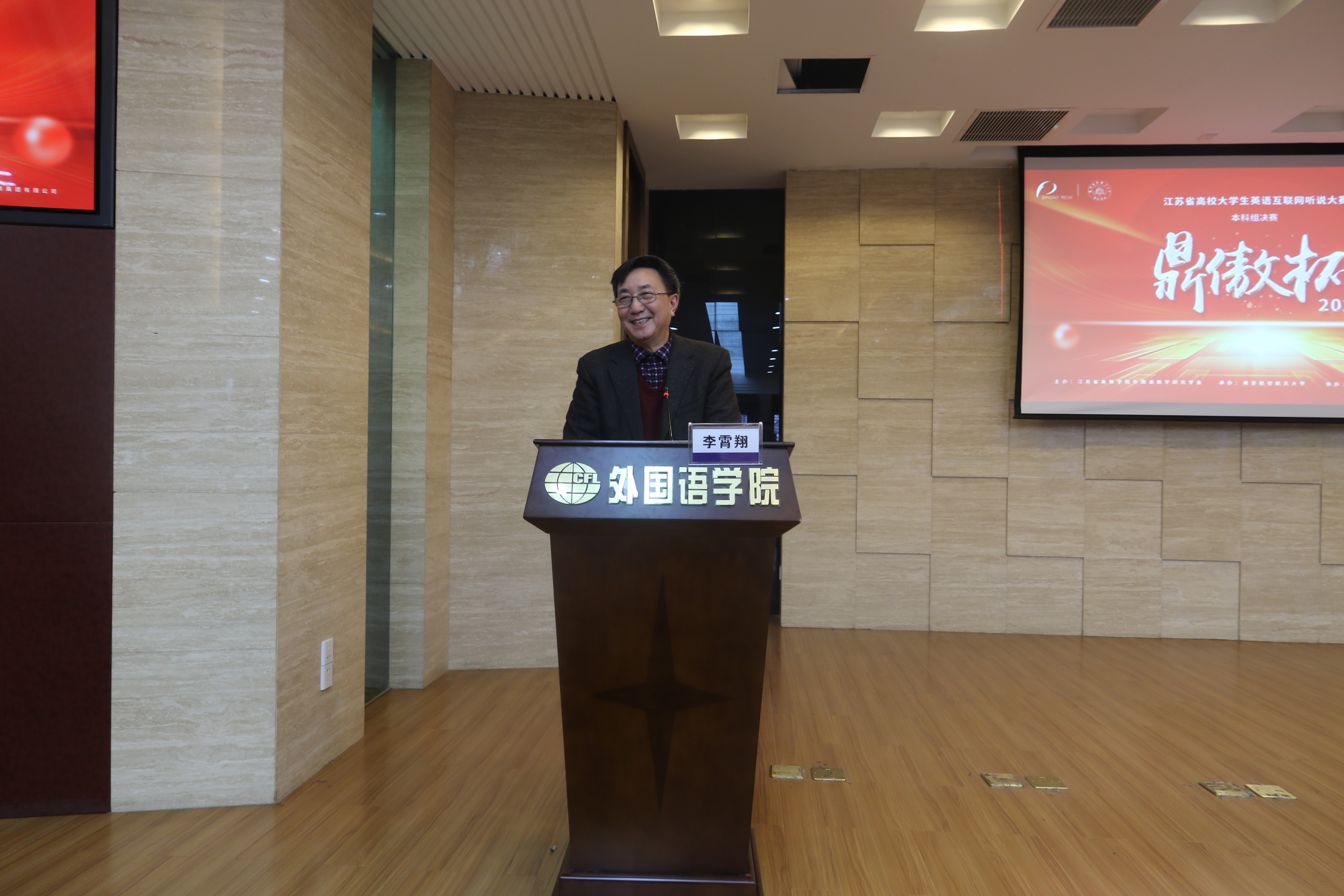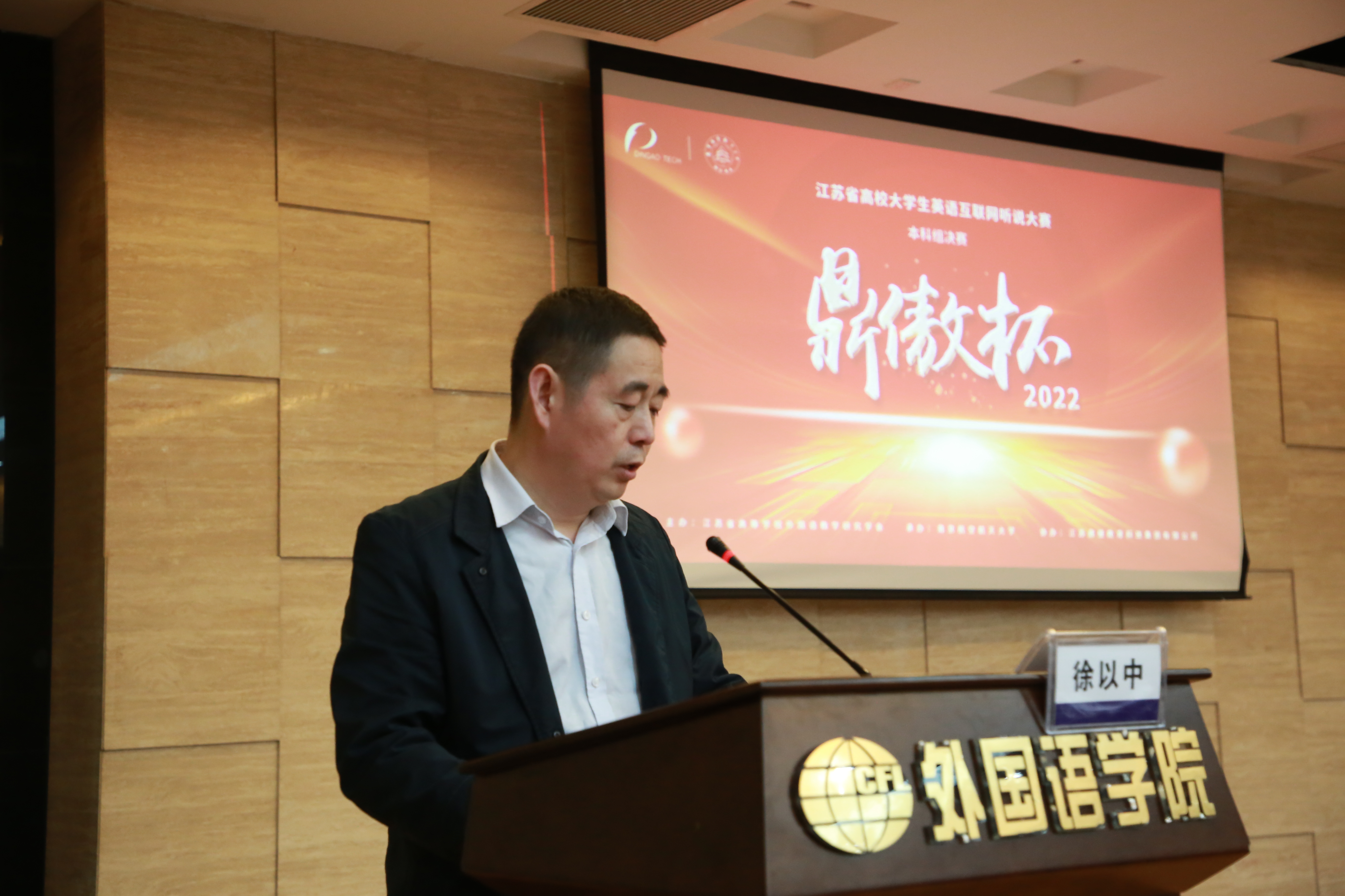 江苏省高等学校外国语教学研究会常务副会长李霄翔、betway西汉姆联教务处处长孔垂谦、江苏鼎傲教育科技集团有限公司董事长徐晖、江苏省各高校必威西汉姆联院长、教授参加了开幕式并担任本次决赛评委。开幕式由必威西汉姆联副院长徐以中教授主持。