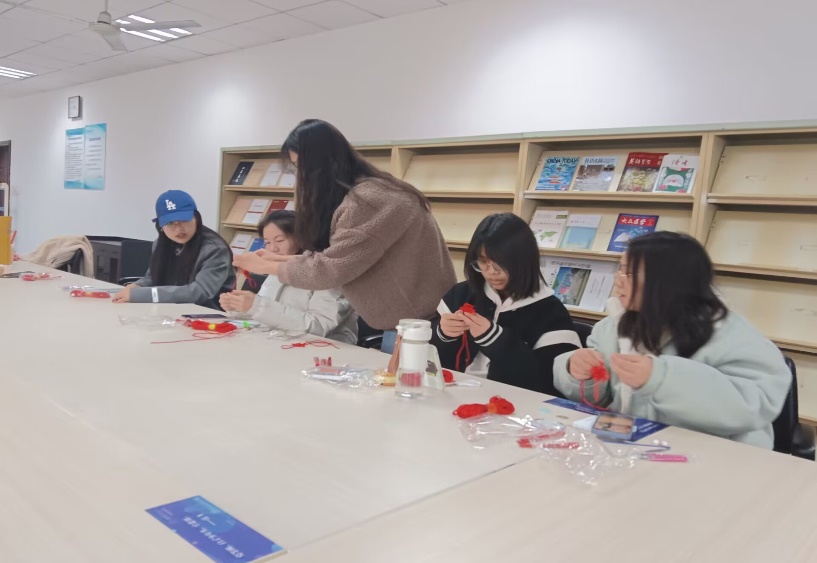 在陈坤雯的指导下,同学们手中的彩色绸线初显雏形,鲜艳的中国结搭配上流苏、玉环、铜钱等小装饰品更增添了别样的韵味。