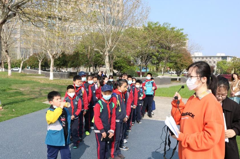 4月1日,必威西汉姆联S2022级研究生学硕团支部与南京青风志愿者服务中心、滨江外国语小学联合开展研学活动,滨江外国语学校四年级部分学生代表来我校御风园参观。