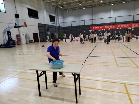 第三个项目是“南水北调”,首名队员持空水杯至盛水容器处接力取水,固定时间内“调水”最多的队伍获胜。既要跑得快,又要跑得稳,赛况分外胶着,老师同学们的运动热情在趣味赛中挥洒地淋漓尽致。