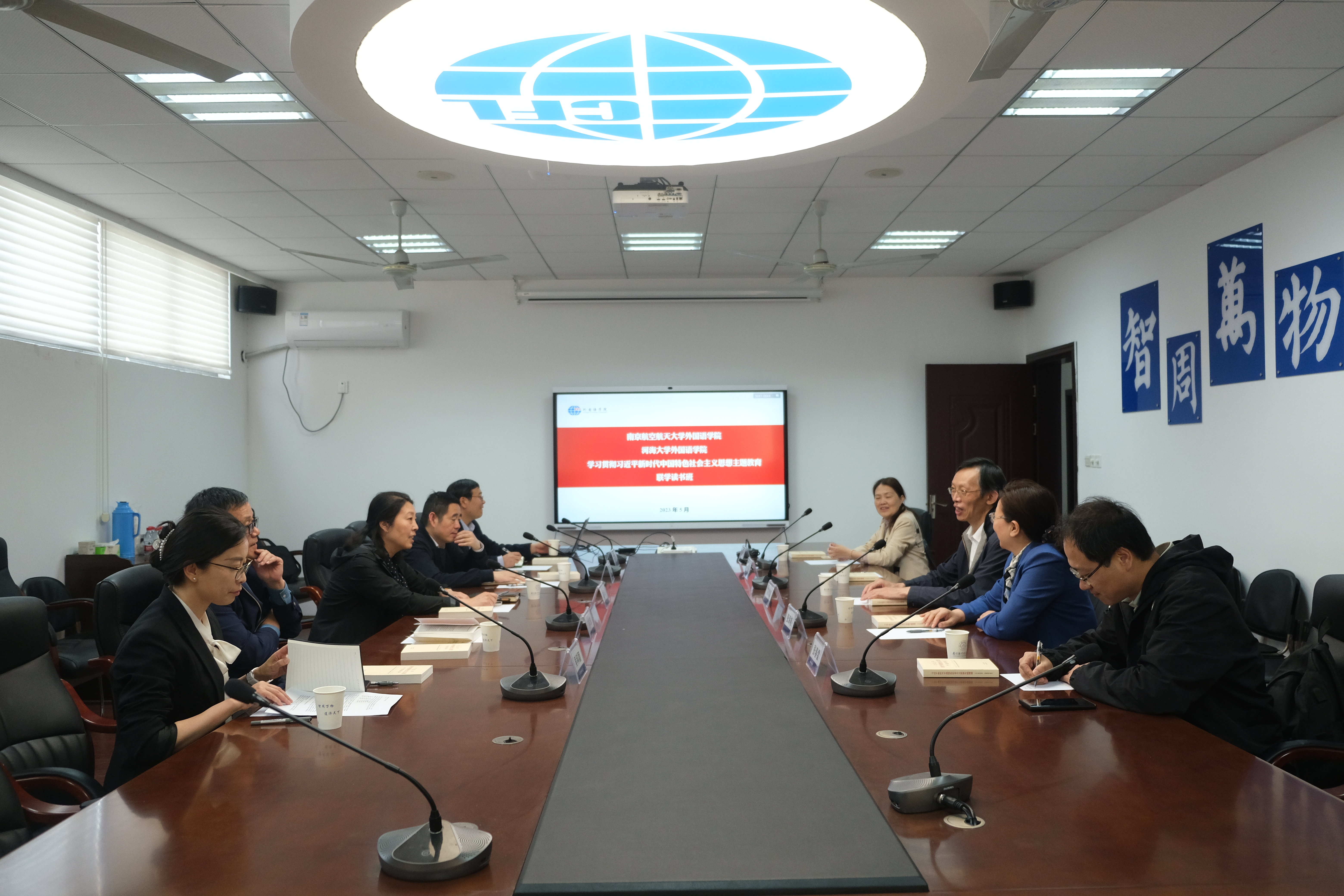 会上,聚焦党的二十大报告、《习近平著作选读》第一卷、第二卷、《习近平新时代中国特色社会主义思想专题摘编》中关于教育、科技、人才和青年等方面的篇章,左彤云、雷贵荣原原本本、逐字逐句进行了诵读领学,双方党委理论中心组成员分别就学习内容展开研讨。双方还就人才培养、学科建设和思政育人等方面进行交流并达成了合作共识。