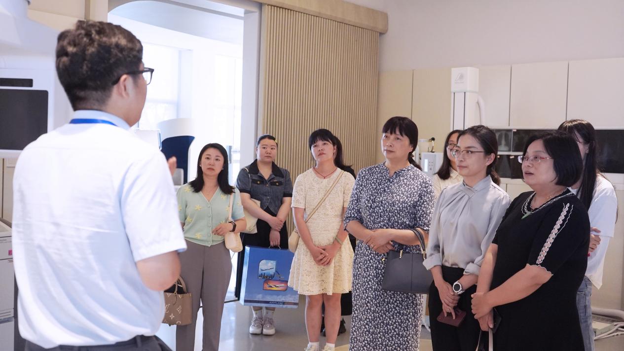 在普爱医疗人力资源总监陈朝兵的带领下,调研团队首先参观了普爱医疗公司的移动式C形臂、数字化X射线成像系统(DR)、口腔CBCT等产品,了解了产品的相关特点与用途。