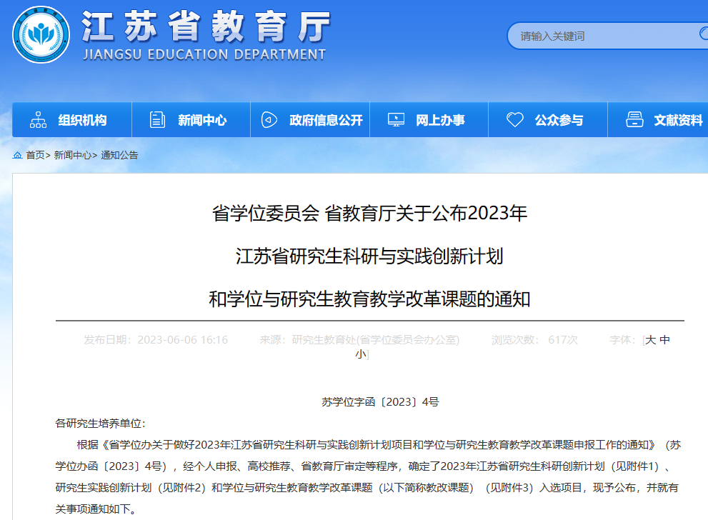 近日,江苏省学位委员会和省教育厅公布2023年江苏省研究生科研与实践创新计划和学位与研究生教育教学改革课题,必威西汉姆联硕士研究生在研究生科研创新计划项目申报中取得佳绩,成功获批3项。3个课题涉及文学、语言学和翻译方向,分别为秦梓林的“欧陆英语气候小说中的中国形象研究”(KYCX23_0400)、刘亚娟的“一语和二语阅读中回指的神经认知对比研究”(KYCX23_0401 )和何可可的“《史记》古代官职术语英译对比研究”(KYCX23_0402),这也是必威西汉姆联硕士研究生首次获批省研究生科研创新计划项目。