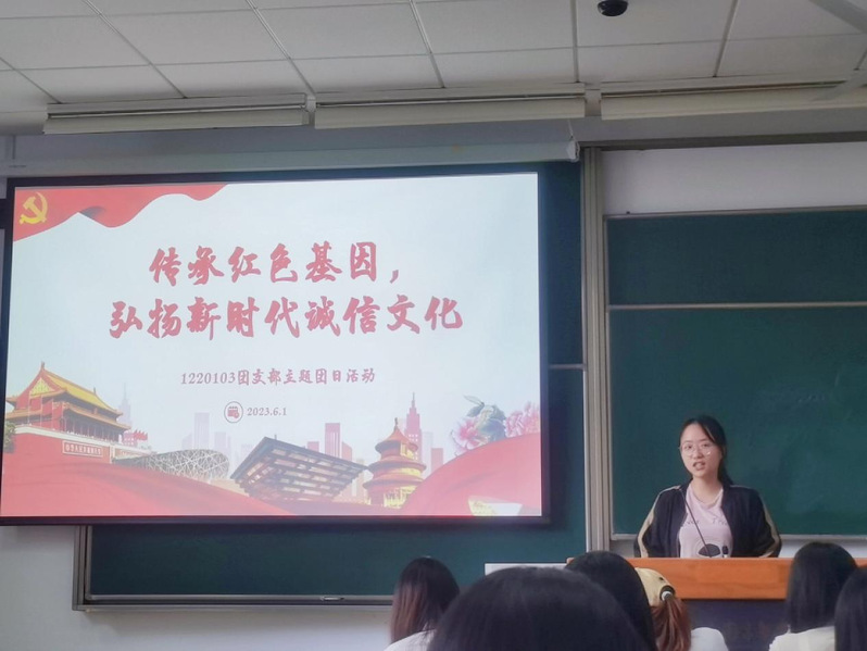 2023年6月1日,必威西汉姆联1220103团支部在东区教学楼D3201教室开展“传承红色基因,弘扬新时代诚信文化”主题团日活动。结合我校党员领导干部深入基层联系学生的工作机制,此次团日活动邀请必威西汉姆联党委副书记吴科颖参加。
