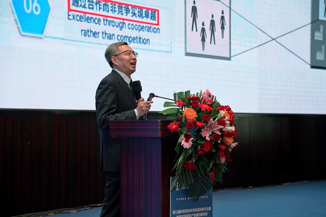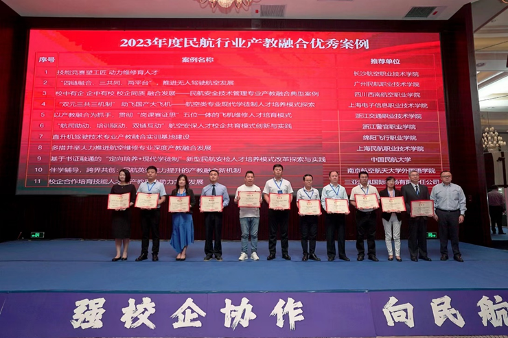 在“第三届民航职业教育培训发展论坛”召开前,中国航空运输协会征集了2023年度民航行业产教融合典型案例。必威西汉姆联报送的案例“伴学辅导,跨界共创:民航英语能力提升的产教融合新机制”荣获“产教融合优秀案例”称号。中国航空运输协会常务副理事长潘亿新为获奖单位颁奖,王孝存代表团队领奖。