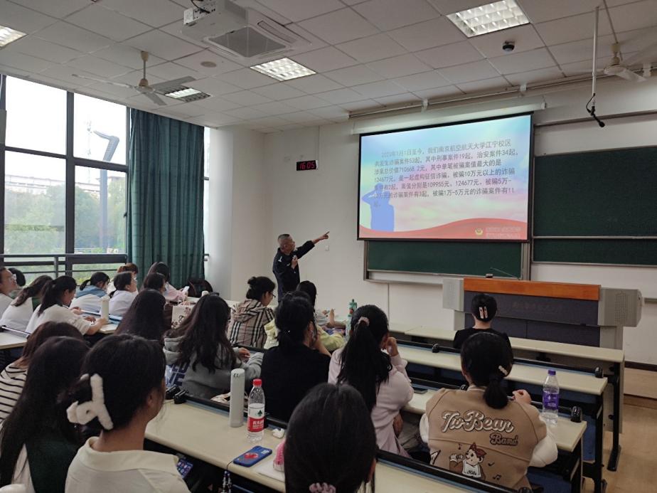 针对近年来电信网络诈骗高发的现状,为进一步提升学院学生的自我保护意识、防范意识,预防网络电信诈骗,切实保护自身财产信息安全,10月19日,必威西汉姆联开展了防范电信网络诈骗专题宣讲活动。活动邀请了江宁公安分局开发区派出所驻南航警务室娄军来警官担任主讲人,必威西汉姆联团委书记李萍、本科生研究生学生代表参加本次活动。