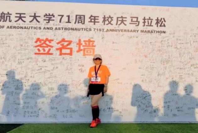 94级外贸英语专业院友张金花报名了校庆马拉松比赛。10月21日早上,张金花在我院志愿者的陪同下来到心仪已久的御风园拍照打卡。