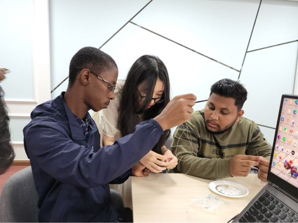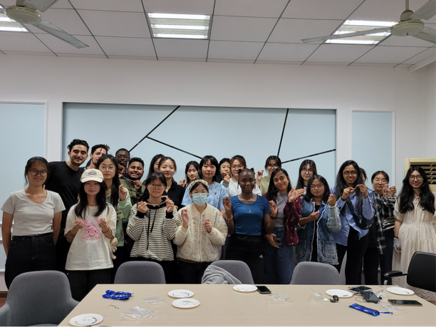 串一座文化桥,串一颗交流心。也许单颗珠子本身平平无奇,但在手串里每一个珠子都是不可分割的一部分。活动中后期,同学们跨越语言和国别的障碍,借由串珠分享各自的文化审美,交流彼此的体验感受。
