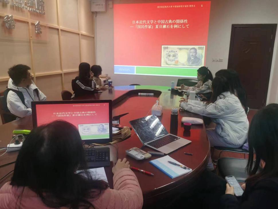 活动的第一位主讲人是张晋文老师。张老师是日语系副教授,曾在日本留学并获得博士学位,研究方向主要是日本近代文学。张老师的主讲题目是《日本近代文学与中国古典的相关性——以“国民作家”夏目漱石为例》,通过分析长篇小说《草枕》细致探讨了漱石对中国古典文学的引用和借鉴以及他试图从世俗中脱离出来回归自然的心境。张老师还介绍了漱石对明治维新以来的社会现象所持有的批判意识及漱石一生追求的思想境界。