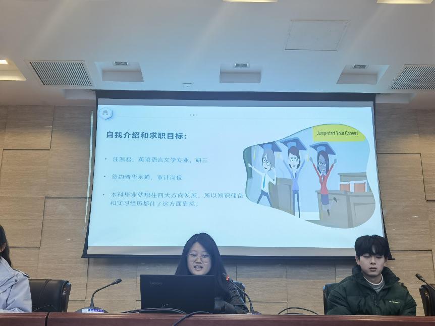 汪源君就业单位是普华永道,她分享了自己研究生阶段在专业学习的同时备考CPA的经历,建议大家提早谋划就业方向,同时要时刻关注市场的动向和变化。