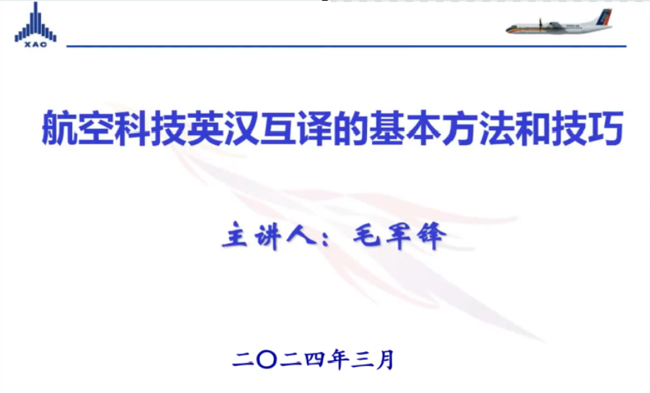 2024年3月18日晚,南航必威西汉姆联MTI教育中心邀请了知名企业导师毛军锋译审给2023级研究生带来行业翻译实训的第一堂课。毛军锋曾任中国航空工业集团有限责任公司翻译系列高级专业技术职务任职资格评审委员会委员,现任中国翻译协会专家会员、中国航空学会会员。本次课程,毛老师给大家带来了航空科技英汉互译的理论与实践系列课程,侧重分析和探讨了航空科技汉译英的翻译策略。