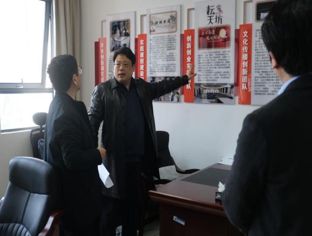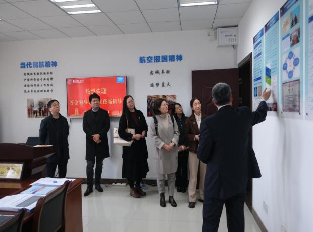 在集中参观环节,由学院领导带领预评估专家参观我院主题创新区、实验室等。期间,王孝存与赵富春老师分别对数智化航空外语主题创新区和 “耘天坊”大学生主题创新区进行了介绍。