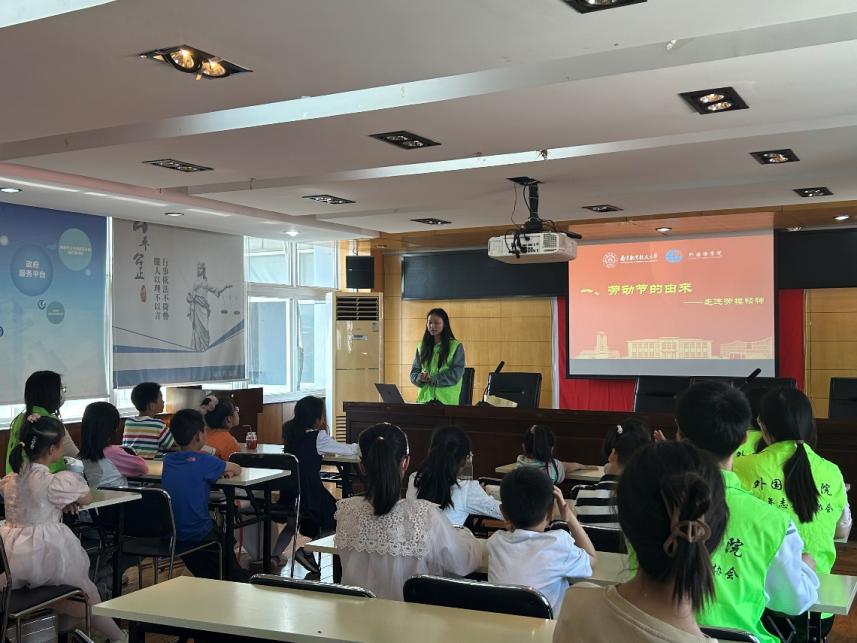 活动伊始,学生党员代表易邦妮首先向社区的小学生们介绍了“五一”国际劳动节的历史起源及其在中国的发展历程。