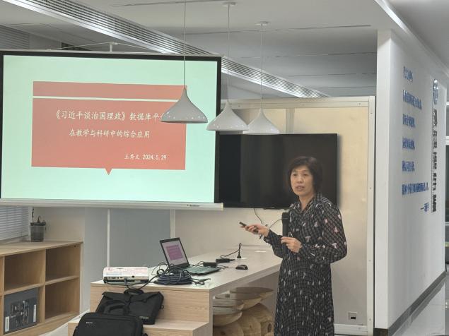 王秀文副教授介绍说《习近平谈治国理政》多语种数据库综合平台包括语料库、知识库和文献库三大板块,可助力外语教学与科研的数据化、智能化、可视化。此次分享主要结合南航大学英语后续课程《科技英语翻译》教学以及项目申报、学术会议、毕业设计、论文写作等科研方面和大家交流平台的应用。
