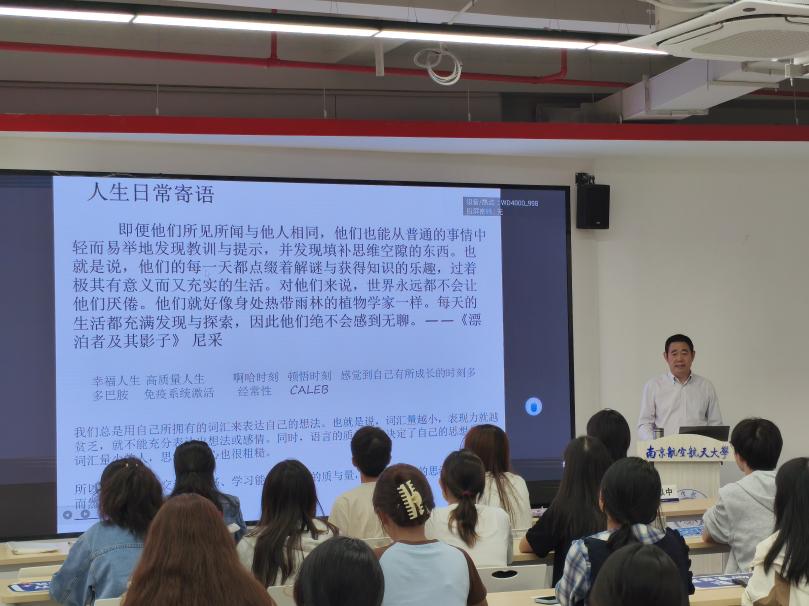在讲座中,徐以中首先强调了广泛阅读对于外语学习的重要性。他指出,阅读不仅能够帮助学生积累词汇、提升语感,更重要的是能够拓宽学生的知识体系。对于外语专业学生而言,广泛阅读不仅是语言技能的“磨刀石”,更是思维塑造的“催化剂”,助力他们在全球化的舞台上以更加开放和包容的视角审视世界。